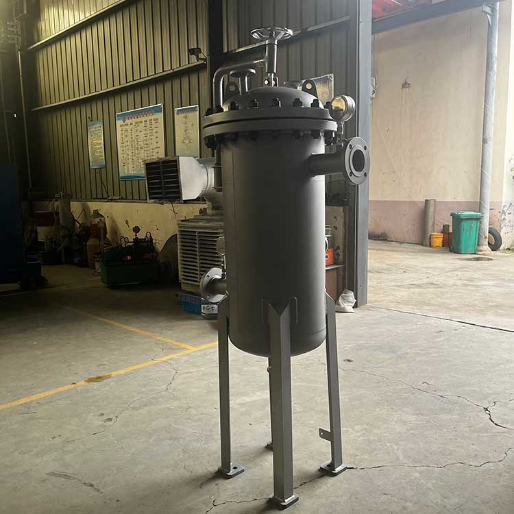 袋式過濾器一種結構新穎、體積小、操作簡便靈活、節能、高效、密閉工作、適用性強的多用途過濾設備。袋式過濾器是一種新型的過濾系統。袋式過濾器內部由金屬網籃支撐濾袋,液體由入口流進,經濾袋過濾后從出口流出,雜質攔截在濾袋中,更換濾袋后可繼續使用。